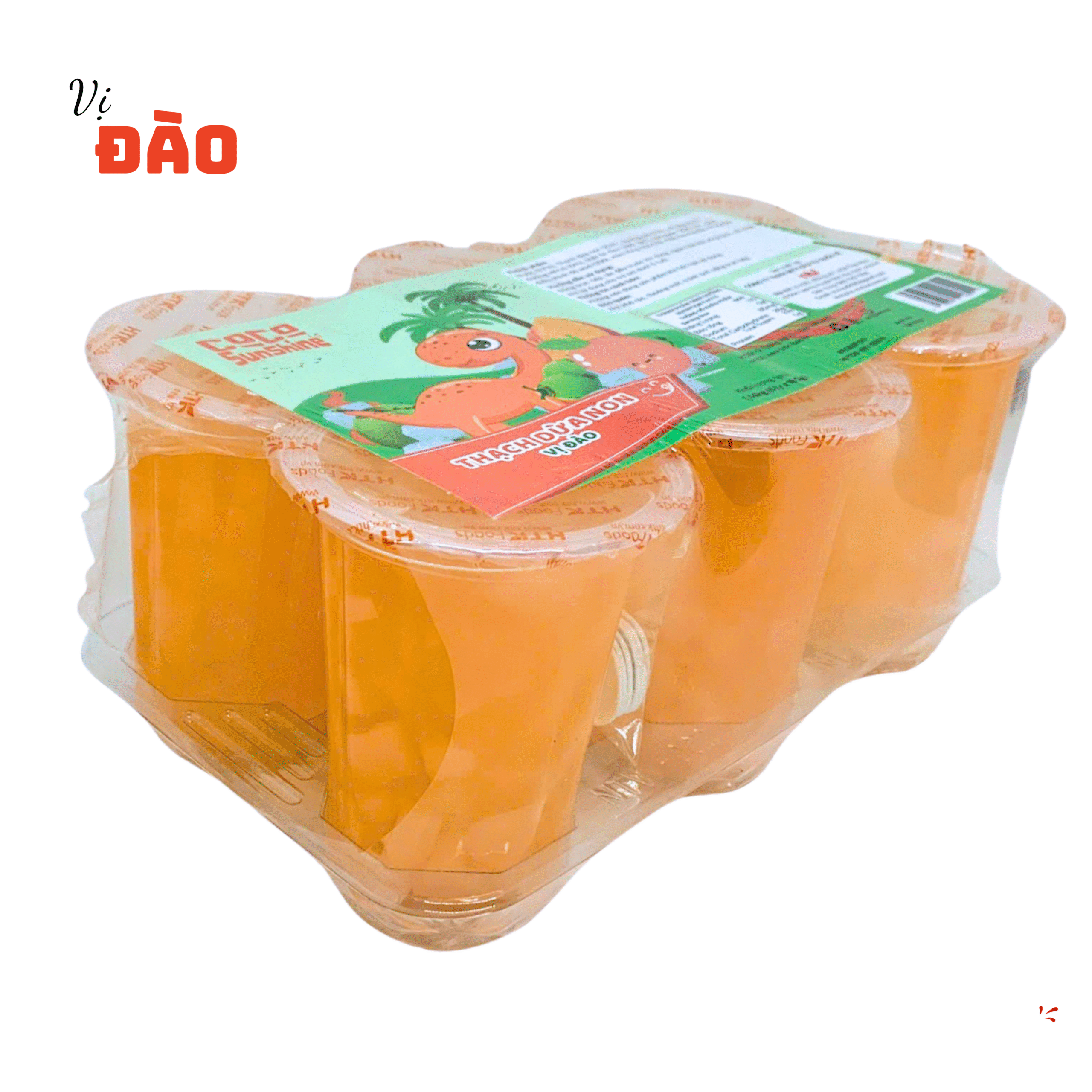 – Thành phần: thạch dừa (50%), nước (34,5%), đường (14,5%), chất điều chỉnh độ acid (330), chất bảo quản (211), hương đào tổng hợp